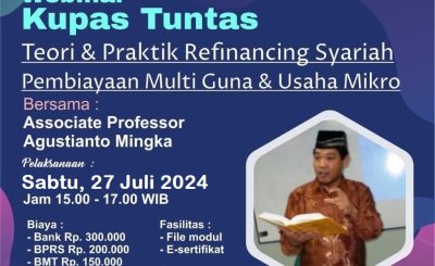 SEMINAR KUPAS TUNTAS TEORI & PRAKTIK: Refinancing Syariah untuk Pembiayaan Multiguna, Refinancing pada Usaha Mikro/BMT di Bank Syariah dan BMT